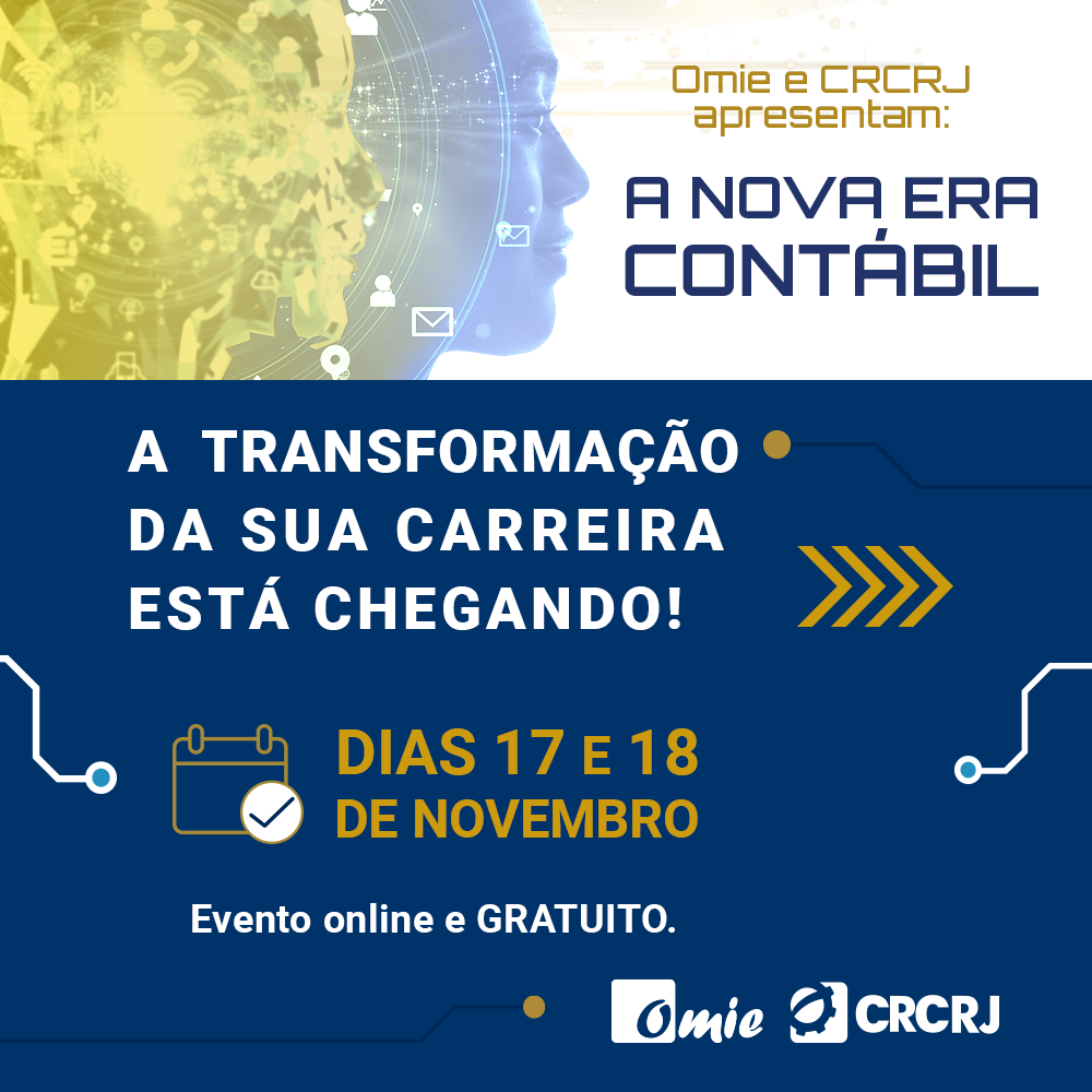Nos dias 17 e 18 de novembro, acontecerá o maior evento online gratuito de inovação para a área contábil: o Nova Era Contábil 2020! Uma realização CRCRJ e Omie. Garanta já sua inscrição e prepare-se para expandir sua visão sobre a área e a profissão!