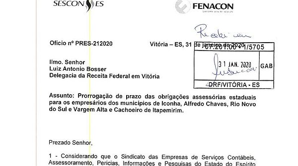 SESCON-ES protocola ofício solicitando prorrogação do prazo para adesão ao Simples