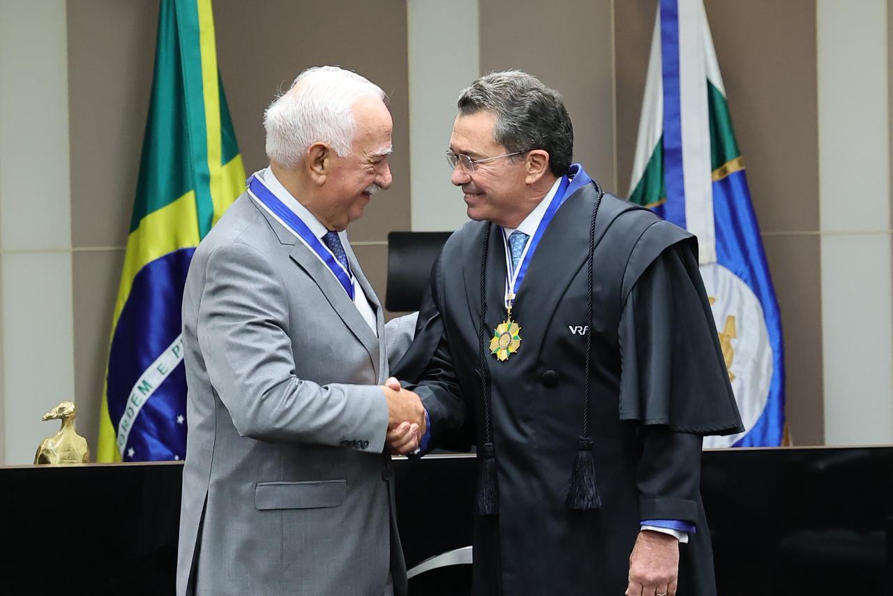 O Conselho Federal de Contabilidade (CFC) prestigiou, nesta quarta-feira (5), a cerimônia de entrega do Grande-Colar do Mérito, no Tribunal de Contas da União (TCU), em Brasília. O presidente e o vice-presidente do CFC, Aécio Dantas e Joaquim Bezerra, estiveram presentes no evento e parabenizaram o contador e professor, Antoninho Marmo Trevisan, pela condecoração. Trevisan é integrante do Conselho Consultivo do CFC e representante dessa autarquia no Congresso Nacional sobre a Reforma Tributária.