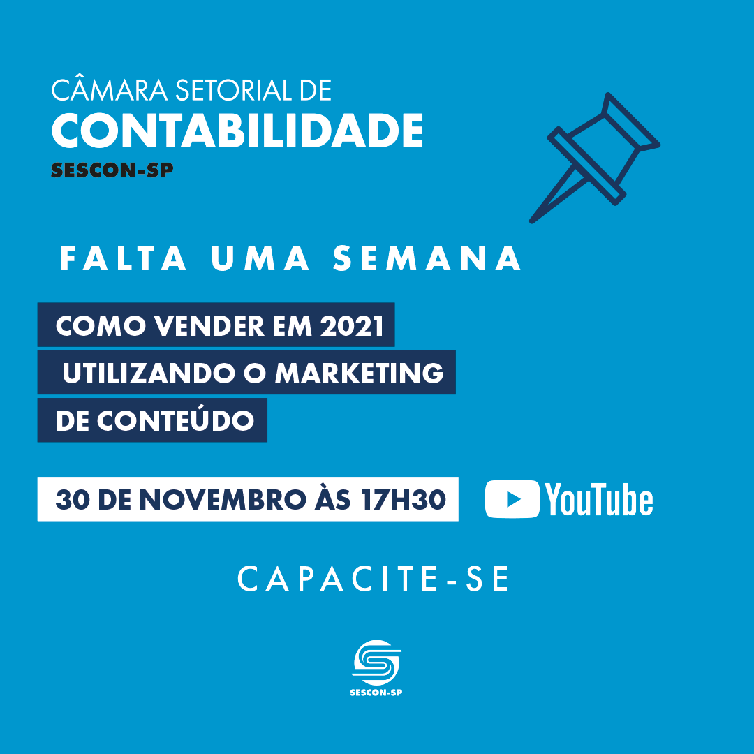 Acontece no dia 30 de novembro, a Câmara Setorial de Contabilidade pelo canal YouTube do SESCON-SP.