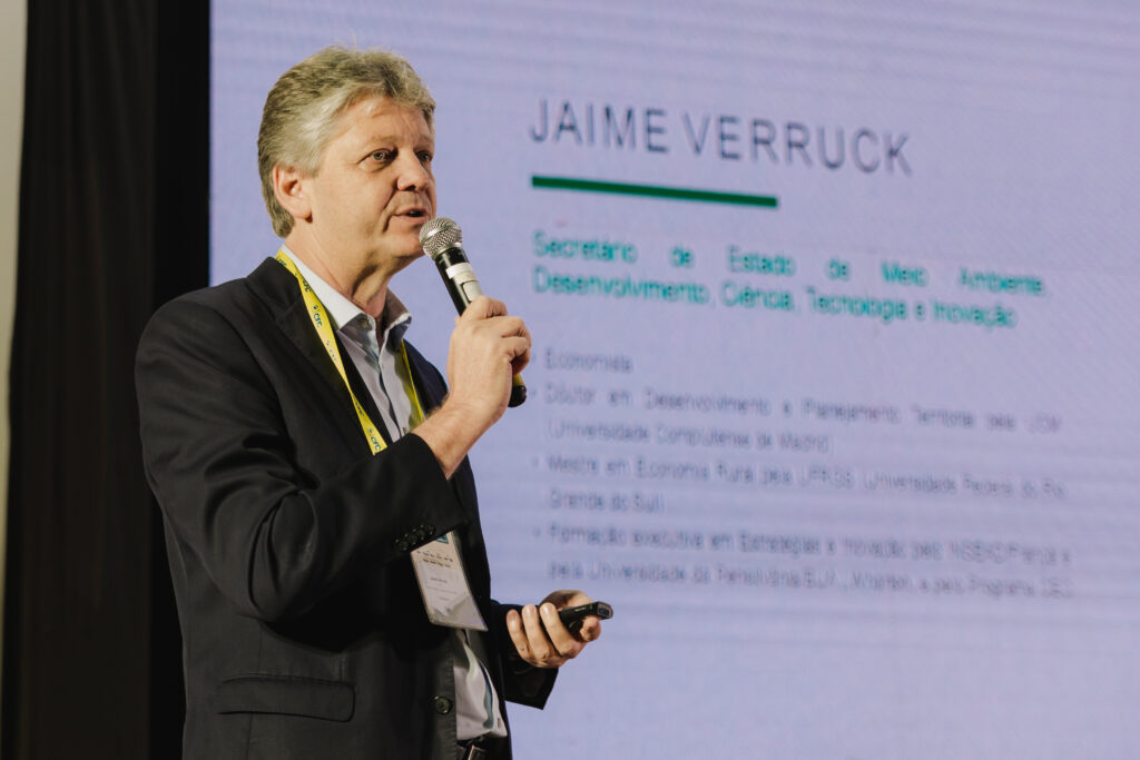 Para dar seguimento a temática, foi chamado o secretário de Estado da Secretaria do Meio Ambiente, Desenvolvimento, Ciência, Tecnologia e Inovação (SEMADESC), Jaime Verruck, que ampliou o debate do painel ao apresentar dados sobre a emissão de títulos verdes, que compõem a temática ESG. Os títulos verdes são instrumentos de negociação de dívidas nos mercados de capitais e que pretendem atrair capital para projetos com impactos socioambientais positivos.
