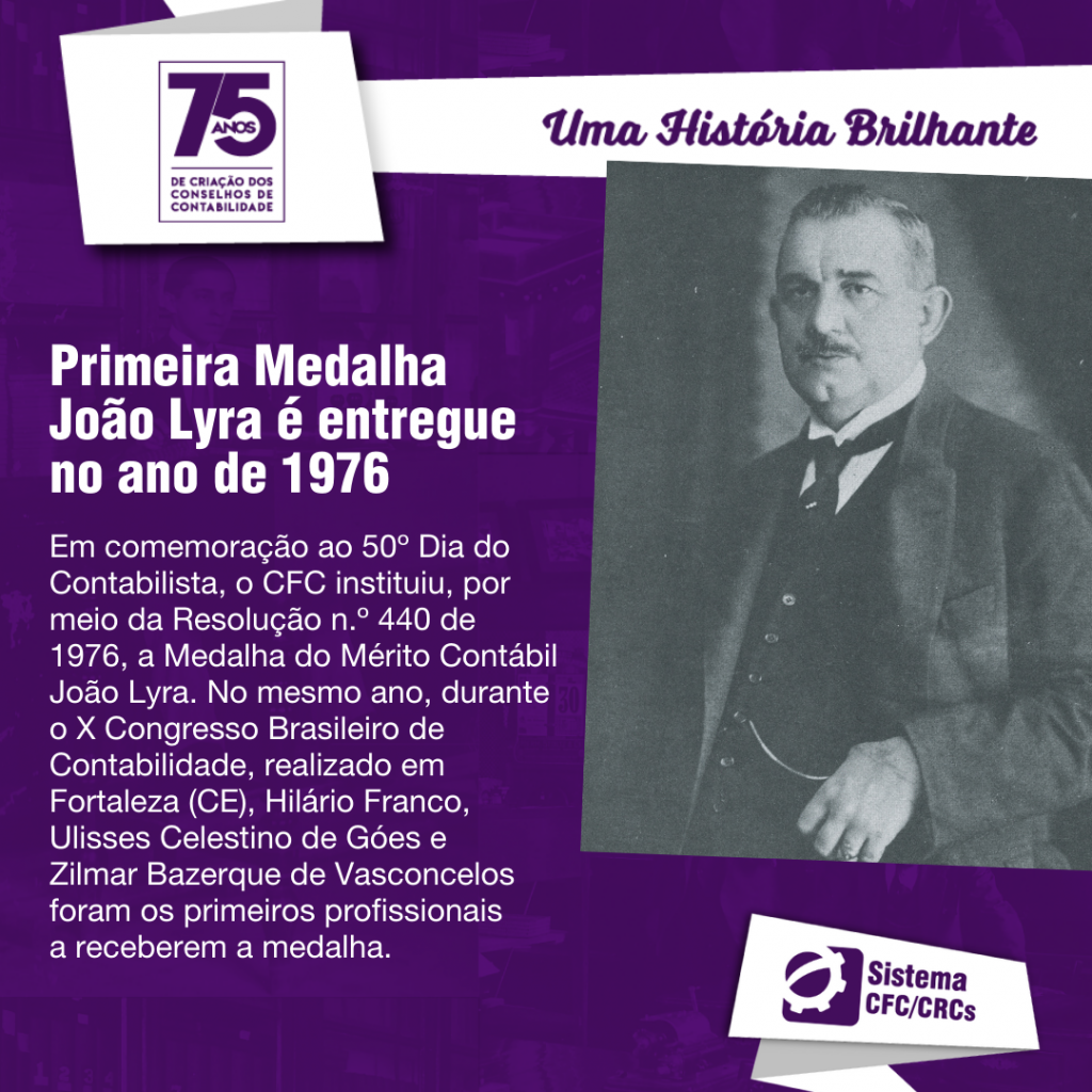 Em comemoração ao 50º Dia do Contabilista, o CFC instituiu a Medalha do Mérito Contábil João Lyra por meio da Resolução n.º 440 de 1976. No mesmo ano, durante o X Congresso Brasileiro de Contabilidade, realizado em Fortaleza (CE), Hilário Franco, Ulisses Celestino de Góes e Zilmar Bazerque de Vasconcelos foram os primeiros profissionais a receberem a medalha, considerada a maior honraria da classe contábil.