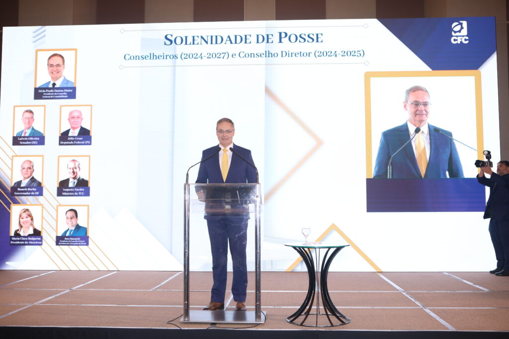A primeira ação solene do evento foi a leitura e a assinatura do Termo de Posse pelo presidente Aécio Dantas. Em seguida, os conselheiros suplentes e efetivos, eleitos para o mandato de 1º de janeiro de 2024 a 31 de dezembro de 2025, foram nominados, receberam certificados, proferiram o juramento e foram empossados pelo presidente do CFC.