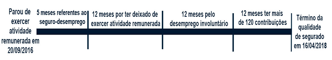 Conte mais dois meses da última data sem considerar os dias: 04/2019. Assim, o dia 16 desse mês é o término da qualidade de segurado do nosso exemplo, isto é, 16/04/2019.
