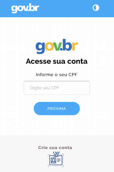 Passo 2: Instale o app e faça o login no âmbito da plataforma GOV.br. Se você ainda não tem cadastro, é só informar o CPF e preencher algumas informações solicitadas para completar o login.
