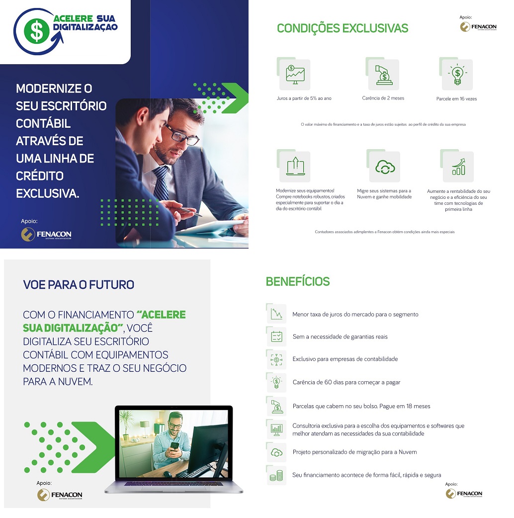 O projeto ‘Acelere sua Digitalização’ fomenta a transformação digital dos contadores por meio de um financiamento para aquisição de softwares, equipamentos modernos e serviços de migração para a nuvem com condições imperdíveis.