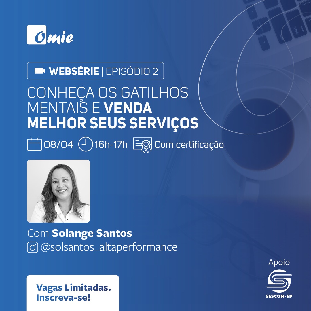 Empreendedores e contadores são elementos primordiais no processo de transformação constante dentro da economia do Brasil. Para ajudar a tornar esse ecossistema ainda mais próspero, a Omie, sistema de gestão mais completo para PMEs, leva a Websérie: Conheça os Gatilhos Mentais e Venda Melhor seus Serviços com Solange Santos até você.
