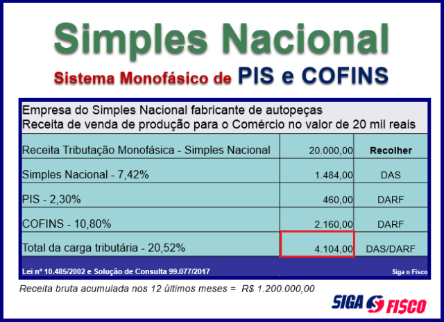 Desde a instituição do Simples Nacional pela Lei Complementar nº 123 de 2006, dúvidas ainda pairam sobre a tributação da receita de venda de produtos objeto de fabricação ou importação, quando enquadrados no sistema monofásico de PIS e COFINS.