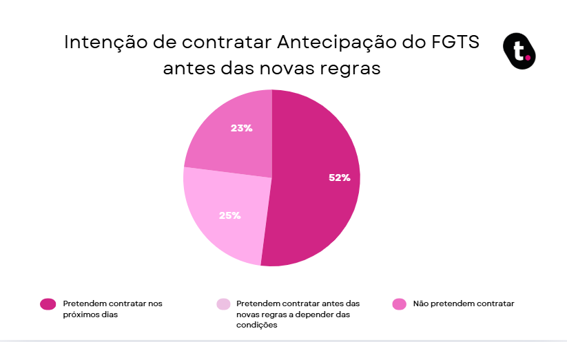 A intenção de contratar agora aparece com força nos dados, de acordo com a pesquisa realizada pela fintech meutudo, 52% disseram que pretendem antecipar nos próximos dias, 25% responderam talvez, dependendo das condições, e 23% não pretendem contratar.